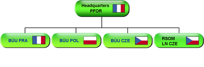 Pro provedení operace PFOR byla organizačně vytvořena jedna mezinárodní jednotka RSOM se servisní působností na celé ÚU. Začlenění jednotky RSOM a její stručné členění je na obrázku 5.