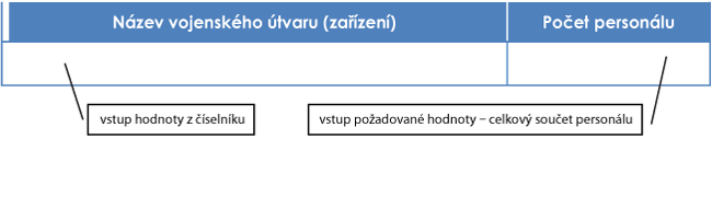 Dejme tomu, že je nutné sledovat počty personálu po vojenských útvarech a zařízeních. Nutností je tedy vytvořit seznam vojenských útvarů a zařízení, kterým bude přiřazován počet jejich příslušníků.