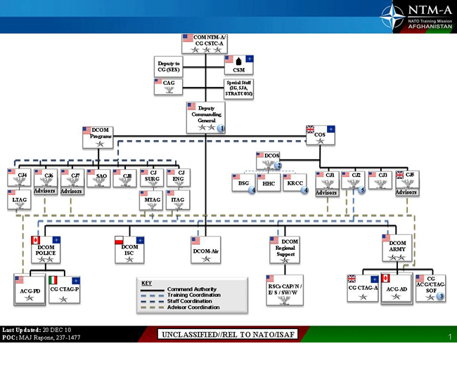 Jednou z pozic, které se chci v rámci 2. zastoupení na velitelství ISAF v tomto článku věnovat, byla pozice styčného důstojníka pro ISAF Velitelství pro výcvik (NATO Training Mission - NTM-A). Nejdříve bych však rád poskytl pár základních informací o misi a velitelské struktuře ISAF.