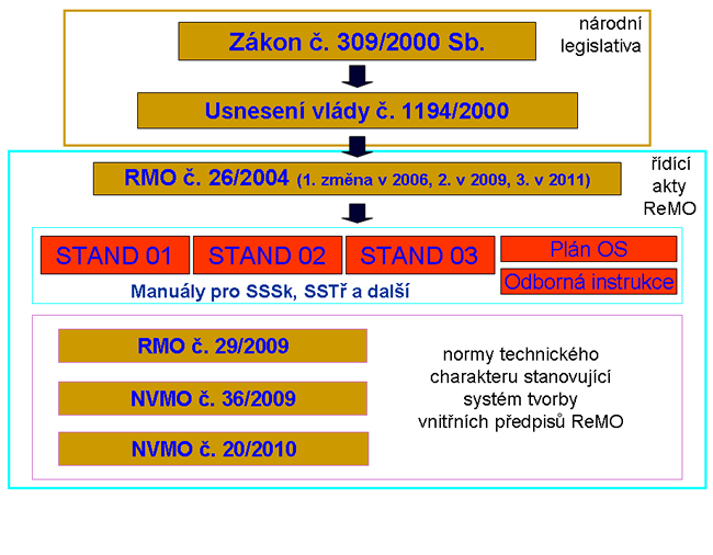 3. RMO č. 26 z 30. září 2004 Zabezpečení obranné standardizace v rezortu Ministerstva obrany, ve znění RMO č. 26/2006 Věstníku (1. změna) a RMO č. 32/2009 Věstníku (2. změna) a RMO č. 5/2011 Věstníku (3. změna).