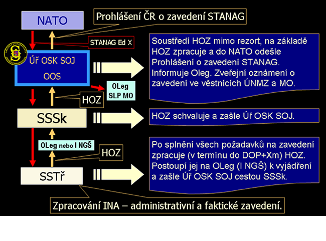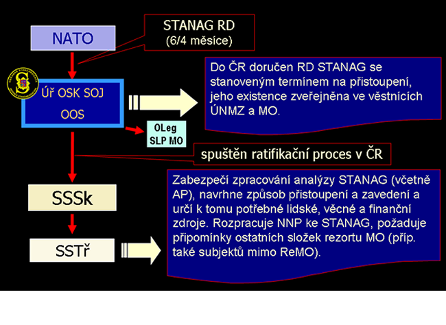 V případě, že SSTř vyhodnotí, že obsah STANAG přesahuje oblast působnosti rezortu MO, neprodleně postoupí NNP prostřednictvím SSSk k dalšímu řízení k Úř OSK SOJ, který dále postupuje podle ustanovení usnesení vlády ČR č. 1194/2000.