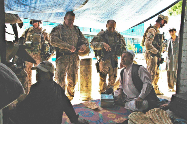 Obrázek č. 5 Jednání na lokální úrovni mezi představitelem komunity (členem šury) a specialistou CIMIC/PsyOp. (Pramen: vlastní)
