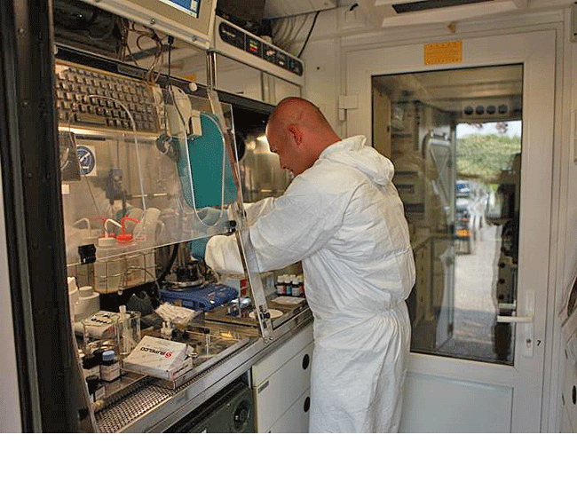 Speciální laboratoře a týmy pro odběr a přepravu vzorků rozvinují řídící a kontrolní prvek a kontaktní místo jako společné vyhodnocovací pracoviště.