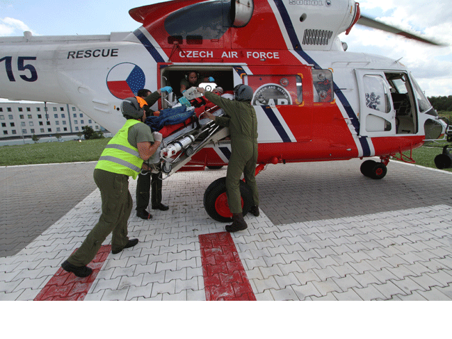 [16] KOUBA, Jan. Vyložení pacienta - heliport Fakultní nemocnice Plzeň. [fotografie, 2012]. In: Fotogalerie/LZS [fotoarchiv]. Formát: 2500x1667.