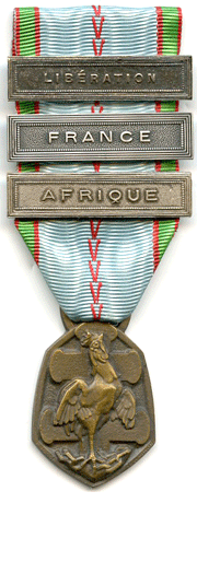 Na medaili bylo možno připnout některý nebo více z 22 štítků: FRANCE za účast v bojích ve Francii v období 3. 9. 1939 a pádu Francie 25. 6. 1940; NORVÉGE za boje v Norsku 12. 4. až 17. 6. 1940; AFRIQUE za boje v Africe mezi 25. 6. 1940 až 13. 5. 1943; EXTR?ME-ORIENT za boje na středním a dálném východě včetně Tichého a Indického oceánu v období 7. 12. 1941 až 15. 8. 1945; LIBÉRATION za účast v bojích ve Francii, včetně Korsiky, mezi pádem Francie 25. 6. 1940 a 8. 5. 1945; GRANDE-BRETAGNE za odboj v Bretani v období 25. 6. 1940 až 8. 5. 1945; ITALIE za boje v Itáli v roce 1943; ALLEMAGNE za boje v Německu v období 14. 9. 1944 až 8. 5. 1945; ATLANTIQUE, LAMANCHE, MER DU NORD, MÉDITERRANÉE za účast v bojích na uvedeých mořích a oceánech, včetně pobřežních operací, po celou dobu války a U.R.S.S. po příslušníky pluku Normandie-Němen bojující v Sovětském Svazu v období 28. 11. 1942 až 8. 5. 1945.