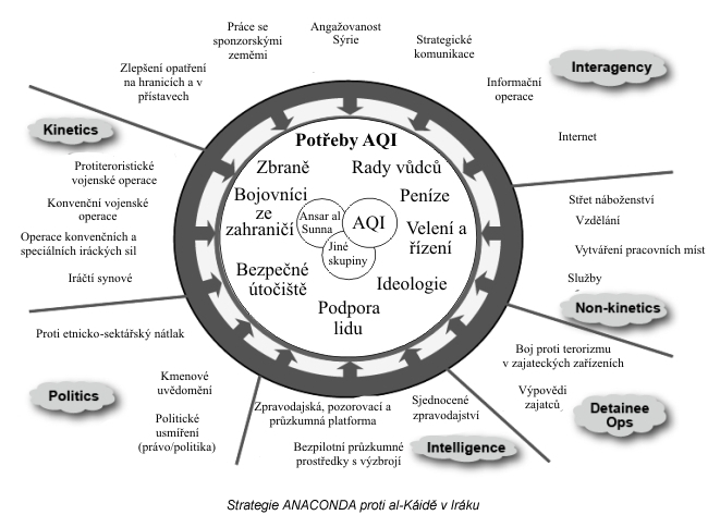 Protiteroristické jednotky nemohou samostatně porazit al-Káidu ani jiné extrémisty. Úspěch vyžaduje široký přístup s využitím všech sil a prostředků, které jsou k dispozici - bojové i nebojové. Zapojte koaliční a irácké síly, speciální síly, irácké syny a všechny dostupné nevojenské prvky, které pomohou v boji proti al-Káidě v souladu se strategií ,,ANAKONDA".