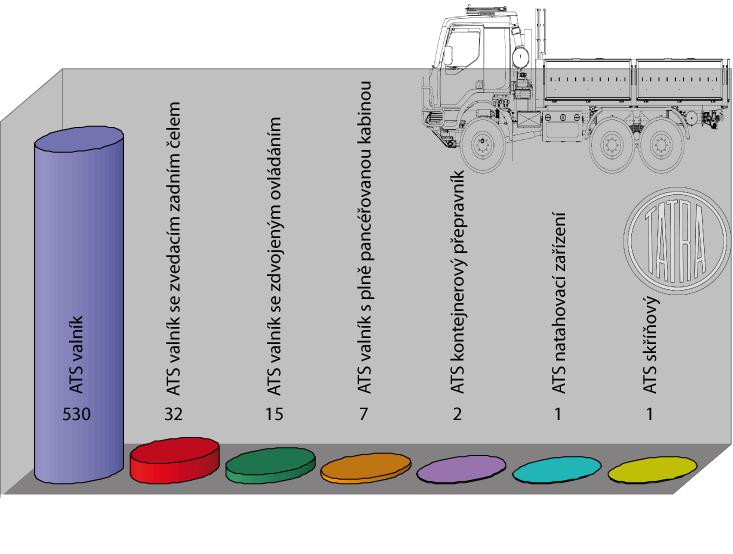 Charakteristickým zástupcem ATS byla do minulých let Praga vojenský třítunový speciál (dále jen PV3S). Vozidlo PV3S nebylo jediným ATS zavedeným do Armády České republiky (dále jen AČR), ale bylo nejpočetněji zastoupeným vozidlem v různých modifikacích jeho účelové nástavby. Do kategorie ATS také patřila vozidla vyráběná v bývalém Sovětském svazu (např. ZIL, GAZ, KRAZ) a další vozidla vyráběná v tuzemsku (např. Tatra, Škoda).