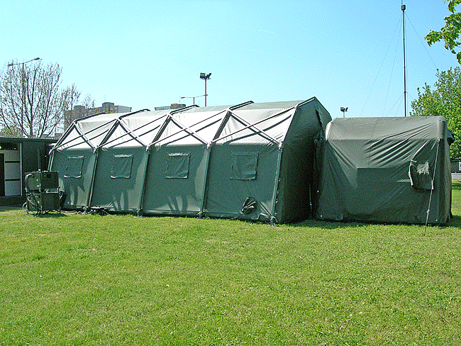 Prostředek kolektivní ochrany COLPRO (Foto Ing. Petr Žuja, ÚOPZHN, Vyškov) Prostředek je určen ke kolektivní ochraně osob před účinky radiační, chemické a biologické kontaminace. Umožňuje bezpečný vstup a výstup osob. |