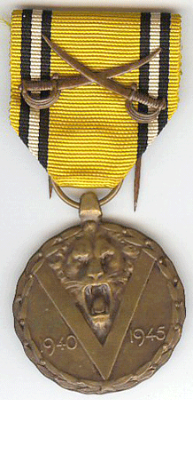 Dne 16. února 1946 byla pro ocenění občanů Belgie a cizinců bojujících v jednotkách belgických ozbrojených sil, hnutí odboje, sloužící v obchodním a rybářském loďstvu během 2. světové války založena Pamětní medaile války 1940-1945 (Médaille Commémorative de la Guerre/ Herinneringsmedaille van de Oorlog 1940-1945, viz obr. 5.